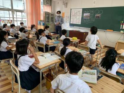 9月2日(金)、大阪市立明治小学校(授業者:永井健太教諭)において、社会科部第3学年部会研究授業を行いました。「店ではたらく人々の仕事(全10時間)」の単元で、本時は第3時間目「問いをもとに学習の計画を立てよう」という授業を行いました。本年度の社会科部の研究主題の副題「〜『問い』に焦点をあてて〜」を踏まえた授業で、子どもたちが前向きに学習活動をすすめ、ともに学びを深め合う授業となりました。