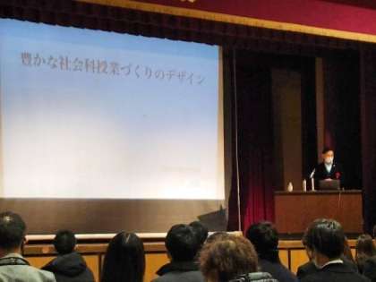 講演会では、関西学院初等部の宗實直樹先生から「豊かな社会科授業づくりのデザイン」という演題で明日からの実践に役立つお話をしていただきました。