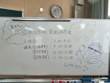 8月8日 育和小学校において、図画工作部員対象の「実技研修会」を行いました。