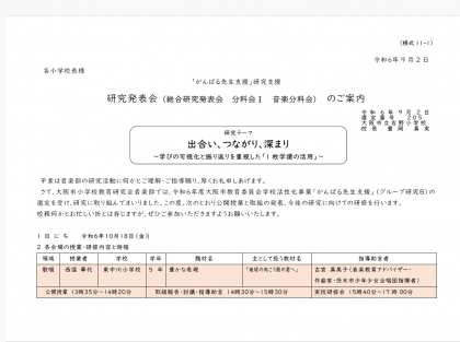 令和6年10月18日(金)、音楽部4領域の公開授業研究会を行います。