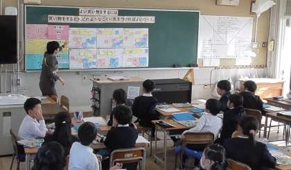3年生は、家庭科につながる学習として、社会科「店で働く人々の仕事」の授業公開をしました。