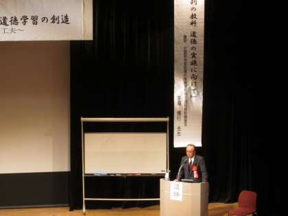 文部科学省初等中等教育局教育課程科教科調査官 赤堀博行先生より、「特別の教科 道徳の実施に向けて」という演題でお話をいただきました。道徳の教科化について大切なポイントを押さえたお話を聞かせていただきました。