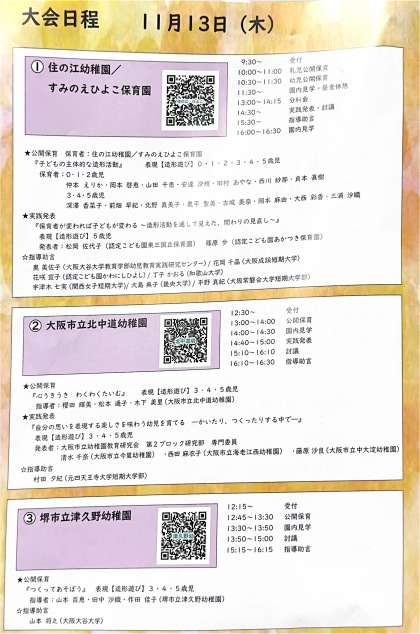 11月13日には、8つの会場で保育や授業の公開、実践発表があります。