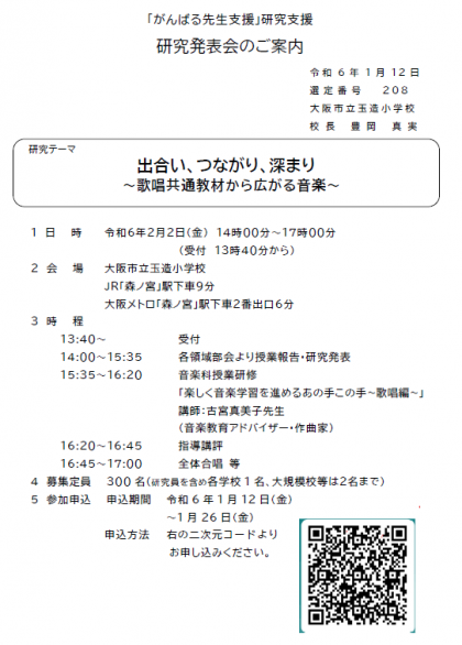 音楽部 「がんばる先生支援」研究支援 研究発表会のご案内