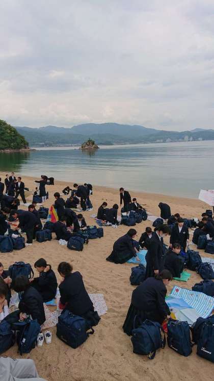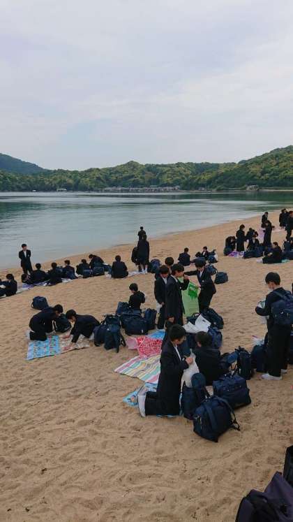 ようやくマリンピアに到着しました。途中、小雨が降っていましたが、到着とともに雨もあがりました。みんなで楽しいお昼ご飯です。