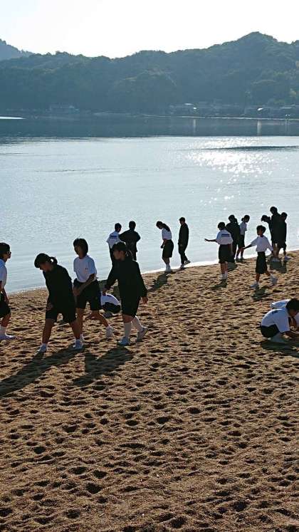 昨日と違って、今日は快晴。朝の砂浜で爽やかな1日のスタートです。