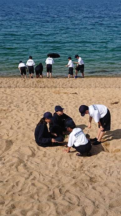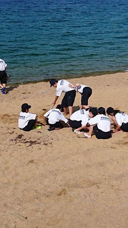 班で力を合わせて、砂の造形スタートです。各班趣向をこらし、バラエティに富んだ作品が完成しました。