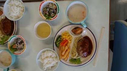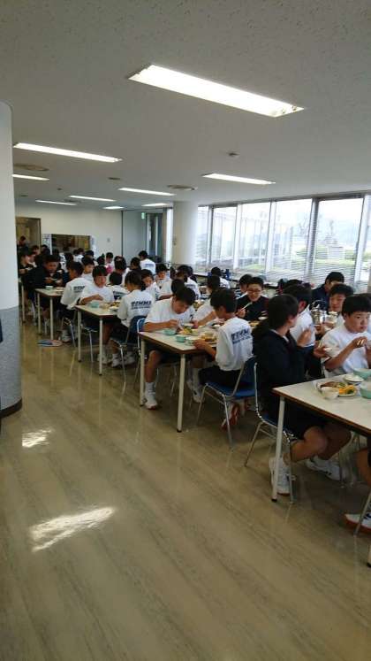 カッター訓練・砂の造形・アスレチック体験とハードなスケジュールに加えてこの暑さ。さぞかし疲れているのでは、と思いましたがみんな元気に夕食を楽しんでいます。次はお待ちかねの『レクリエーション』クラスの団結力を見せてほしいと思います。