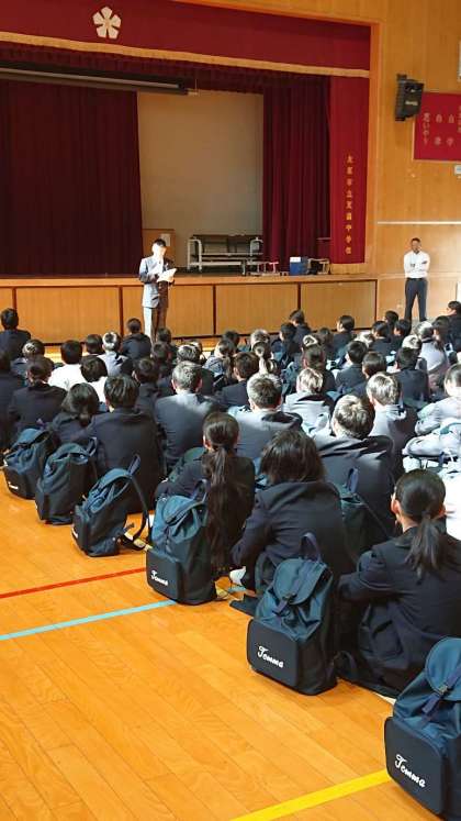 たくさんの保護者の方々や先生方に迎えられ、一年生は天満中学校に戻ってきました!この三日間で学んだことをこれからの生活にいかせるようにしてください。期待しています!