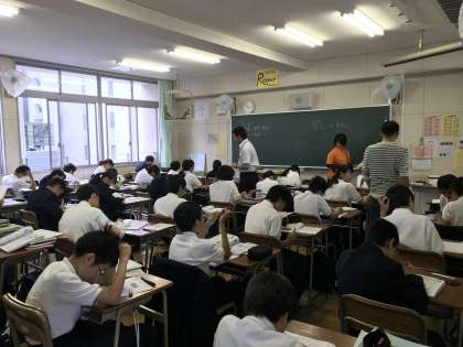 5月18日、第1回土曜学習会が天満中コミュニティ・スクール事業の一環で行われました。地域コーディネーターの方々を中心に、今回は地元企業のJATO株式会社と大阪大学教授の志水先生との連携のもと、大阪大学及び大学院の学生が天満中の学習支援を行っていただくことになりました。また、昨年度から継続して大学生、本校の卒業生の方々も支援していただいています。本日は13名の学習ボランティアの先生方にお越しいただき、1年68名、2年32名、3年26名の合計126名の生徒がテスト前の学習に励みました。生徒のみなさんは積極的に質問していました。特に1年生のヤル気は凄い!PTA役員の方々もお手伝いいただきました。本当に、多くの関係者の皆様に感謝です。これからも天満中応援団としてよろしくお願いします。