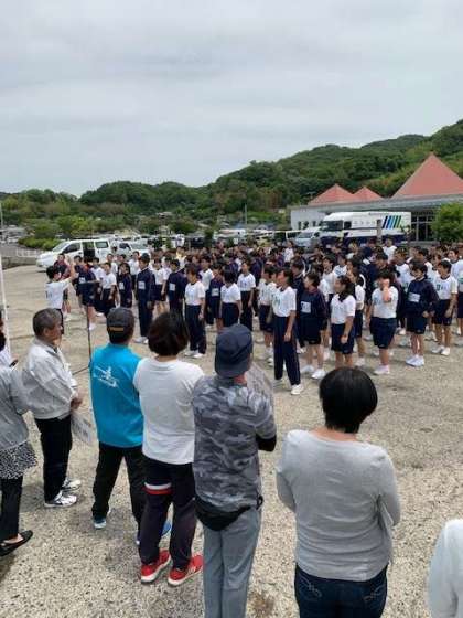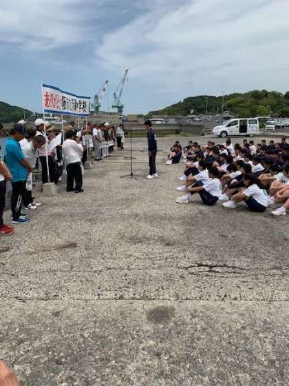 大崎上島のみなさまに感謝の気持ちを込めてのあいさつと、恒例の校歌斉唱です。