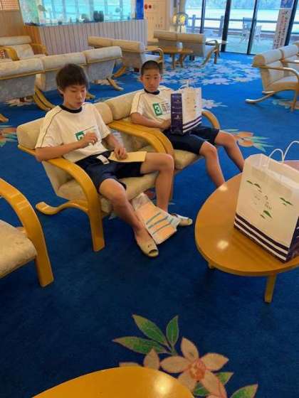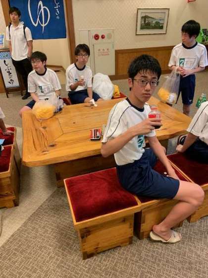 入浴後のジュース、アイスクリームです。まったりくつろいでいます。