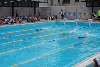 午後から1年生の水泳大会がありました。開始前には大粒の雨が落ちていましたが、1年生のパワーで雨に打たれず競技ができました。応援は先輩たちに負けない元気さで、1階の職員室まで声援が届いていました。ちなみに優勝は4組でした。
