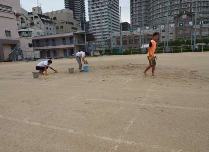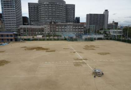 上から順に10:30,11:30.13:10のグランドです。もともと水はけのいいグランドと、先生方のグランド整備のおかげで体育大会全体練習ができます。グランド整備のプロ顔負けの手際の良さです!