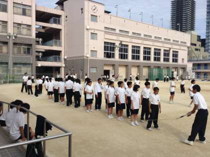 9月20日、朝から体育大会の学年種目を練習しているクラスが続出。1年生は大縄跳び、2年生は背中渡り、3年生は全員リレーです。一人一人がクラスの勝利に何ができるかをテーマに必死で練習しています。本番では、どんなパフォーマンスが見られるか楽しみですね。