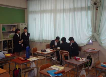 1月31日の笑育本番に向けて、1年生ではグループでネタの準備をしています。教室でネタを作って、先生の前で披露し、何度も何度もネタ合わせをします。完成度の高いグループは体育館でリハーサルをしました。見ている人を笑わせるためには、相手の立場に立って物事を考えることが不可欠です。楽しく取り組む中で大切なことを学んでくれています。