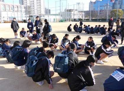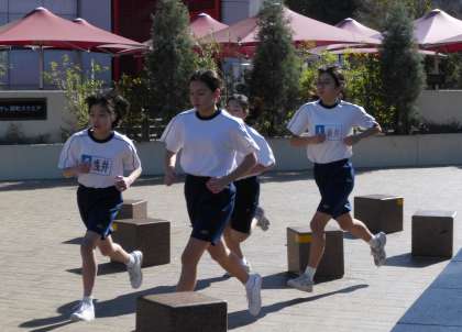 男子は5,350m、女子は3,210mを走ります。二人一組になって走っていない人は何週目かを数えます。応援にも熱が入っていました。PTAの方々にも警備に入っていただき、無事安全に行うことができました。どうもありがとうございました。