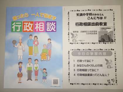 今日の6時間目、3年生を対象に行政相談についての講話がありました。北区役所から行政相談委員の方々をお招きし、行政相談についてお話していただきました。今回のお話で、住みよい街づくりには、自分たちの声を積極的に行政に届けることが大切であると感じました。