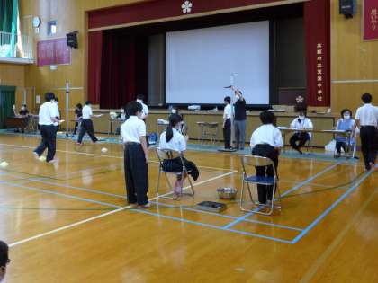 各学級が2つの教室に分かれて、3時間の授業を行います。