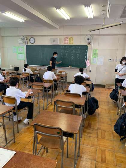 1年生の学活です。「1週間を振り返って」の説明を聞いていました。1週間のできごとを振り返り、心の状態を天気で表します。15日からは教育相談で担任の先生と一対一で話をします。それまででも困ったことはすぐに相談してください。