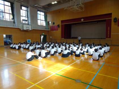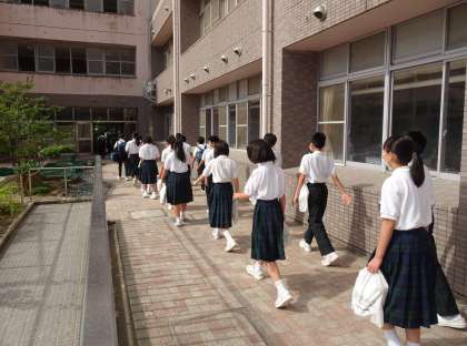 終了後はクラスごとに整列して教室へ戻ります。集団行動も少しずつできるようになってきました。