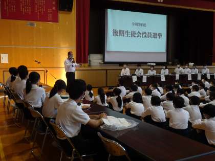 6時間目に後期生徒会役員選挙がありました。
