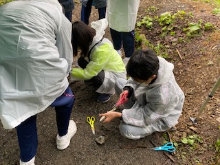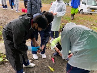 釣った魚はハサミで串焼きに出来るように捌きました。みんな上手です。教え合いもばっちり!
