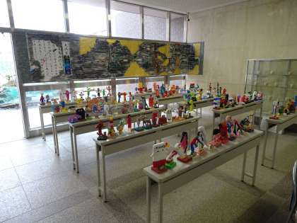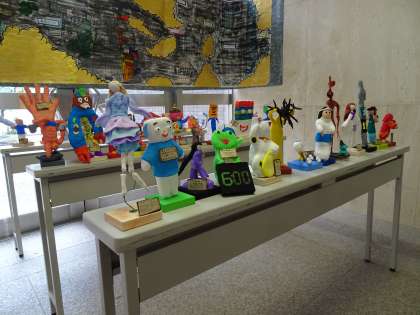 玄関ホールには1年生が美術の授業で制作したオリジナル妖怪が展示されています。どれも紙粘土とは思えないクオリティです。