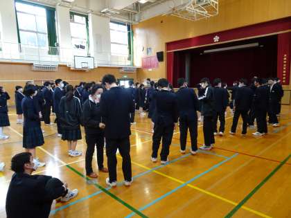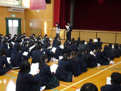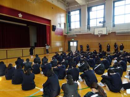 入試に向けての風紀チェック、委員会報告をした後、卒業文集作成についての説明を行いました。3年生にとっては進路に向けての準備や卒業に向けての準備で忙しい日々が続きます。体調管理を徹底し、無事に乗り切ってもらいたいです!