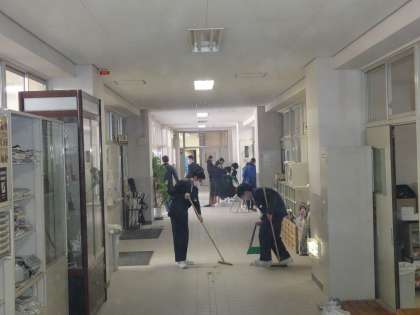 今日は月に一度の美化活動です。普段の清掃区域に加え、特別教室も念入りに清掃をしました。放課後はワックスがけです。この作業のおかげでいつまでもピカピカの床を保つことができています。