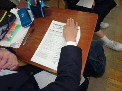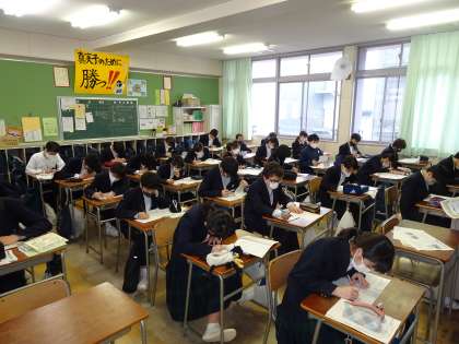 本日、1・2年生は学年末テストの反省をしました。また、1月に実施した中学生チャレンジテストの結果も返却しています。設問ごとの正誤も示されてますので、今後の学習に活かしてほしいです。