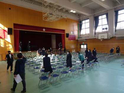 いよいよ今週は卒業式です。午後から2年生の生徒を中心に体育館設営を行いました。これで明日から始まる式練習の準備は万端です。準備の担当にあたった人、ありがとうございました!