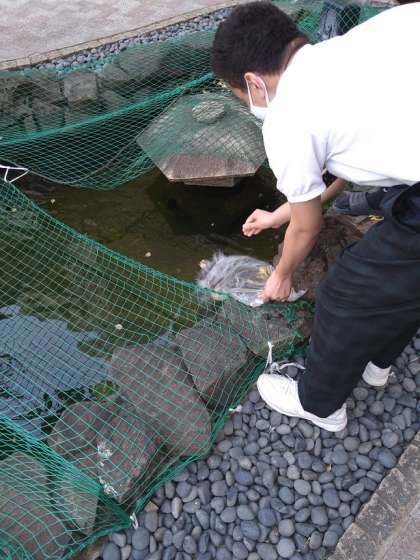 教育観賞用の鯉を20匹購入して池に放流しました。