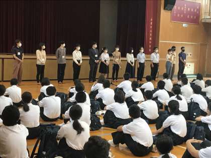 写真は、体育館での開校式の様子(学習支援ボランティアの方の紹介)と学習会で生徒が学習に取り組んでいる様子です。