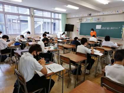 天満中学校では、毎年、地域コーディネーター・大学生ボランティア・地域ボランティアのみなさまの協力のもと、定期テストや入試対策の学びの場を提供しています。