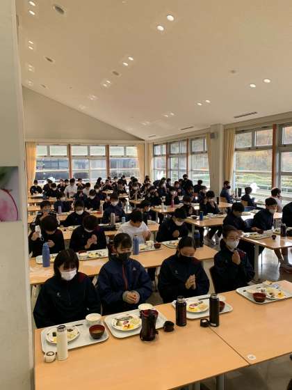 朝食の風景です。朝は全員が揃いいただきました。