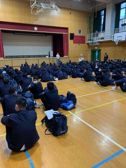 ?体育館での帰校式を終え、ただいま解散しました。この二日間でさすが二年生!と感じる場面と、集団としての伸びしろを感じる場面がたくさんありました。今回の経験を日常の学校に活かし、素晴らしい28期生を作り上げて欲しいです。明日、二年生は9:15から9:30の間に登校してください。時間を間違えないようよろしくお願いします。