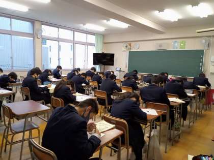 2年生は雨の中9時半ごろに登校し、集会後、クラスで一泊移住の振り返りを行いました。自分が頑張ったところ、仲間のいいところはどんなところがあったか。また、行事を通して学んだことを今後どのように活かすか、などを自分なりにまとめていました。