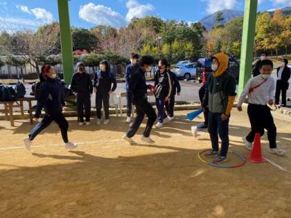 先生とジャンケンをして負けるとチーム全員が走らないといけないゲームです。