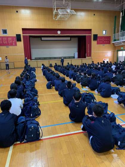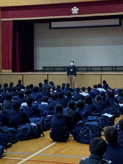 生徒代表のあいさつと写真屋さんの紹介です。間もなくバスへ移動します。
