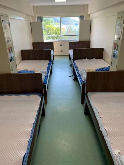部屋に移動しています。1人ずつベッドがあり、正カバンはその下に入れています。