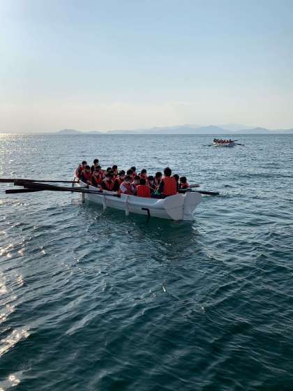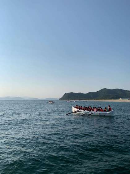 掛け声が海にこだましています。