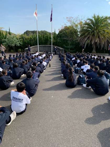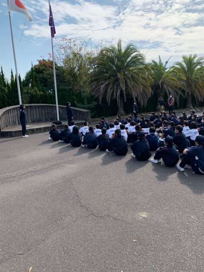 予定通りの時間に退所式を行っています。二日間お世話になった感謝の気持ちを伝えました。