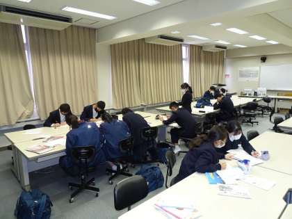 本日より全学年が午前中の授業で終了し、午後からは懇談になっています。3年生は引き続き大和大学の学生ボランティアの協力をいただき、自主学習をしています。