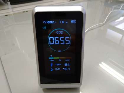 現在もこまめな換気や消毒に努めていますが、さらなる換気状況の向上を図る目的でCO2モニターを4台購入しました。