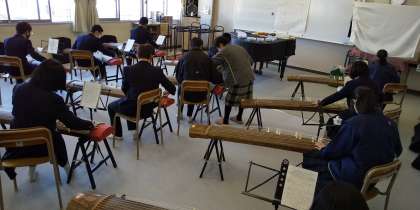 12月から3年生の音楽の授業では『筝』を弾いています。最初は細かい作法や演奏方法に戸惑っていましたが、今では流暢な音色が聞こえてきます。みんなの上達ぶりにもびっくりです。曲はもちろん「さくら さくら」です。日本の伝統音楽も大切にしていきたいですね。筝の音色に心休まるひと時です。