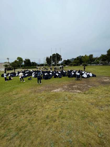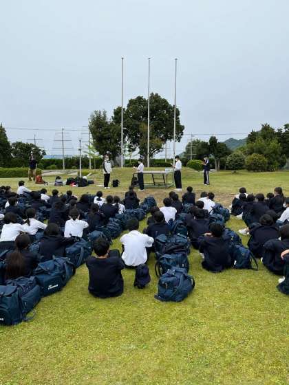 入所式です。生徒の代表が施設の方にあいさつをしています。三日間、よろしくお願いします!