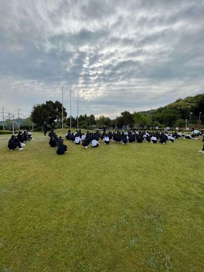 朝の集いです。昨日の学びを活かし、集団で行動しようとしている人が増えていると先生からお話がありました。
