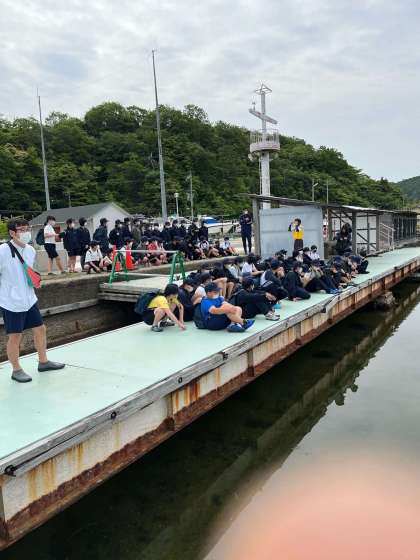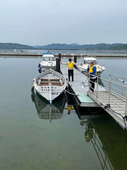 間もなくカッターに乗船します。現地スタッフの説明を聞いています。