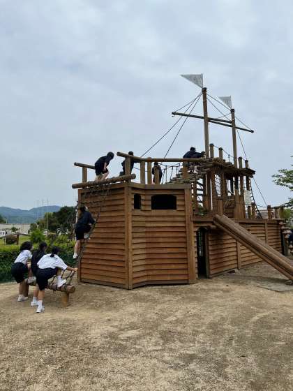 フィールドアスレチックです。自然の中にたくさんの遊具があります。